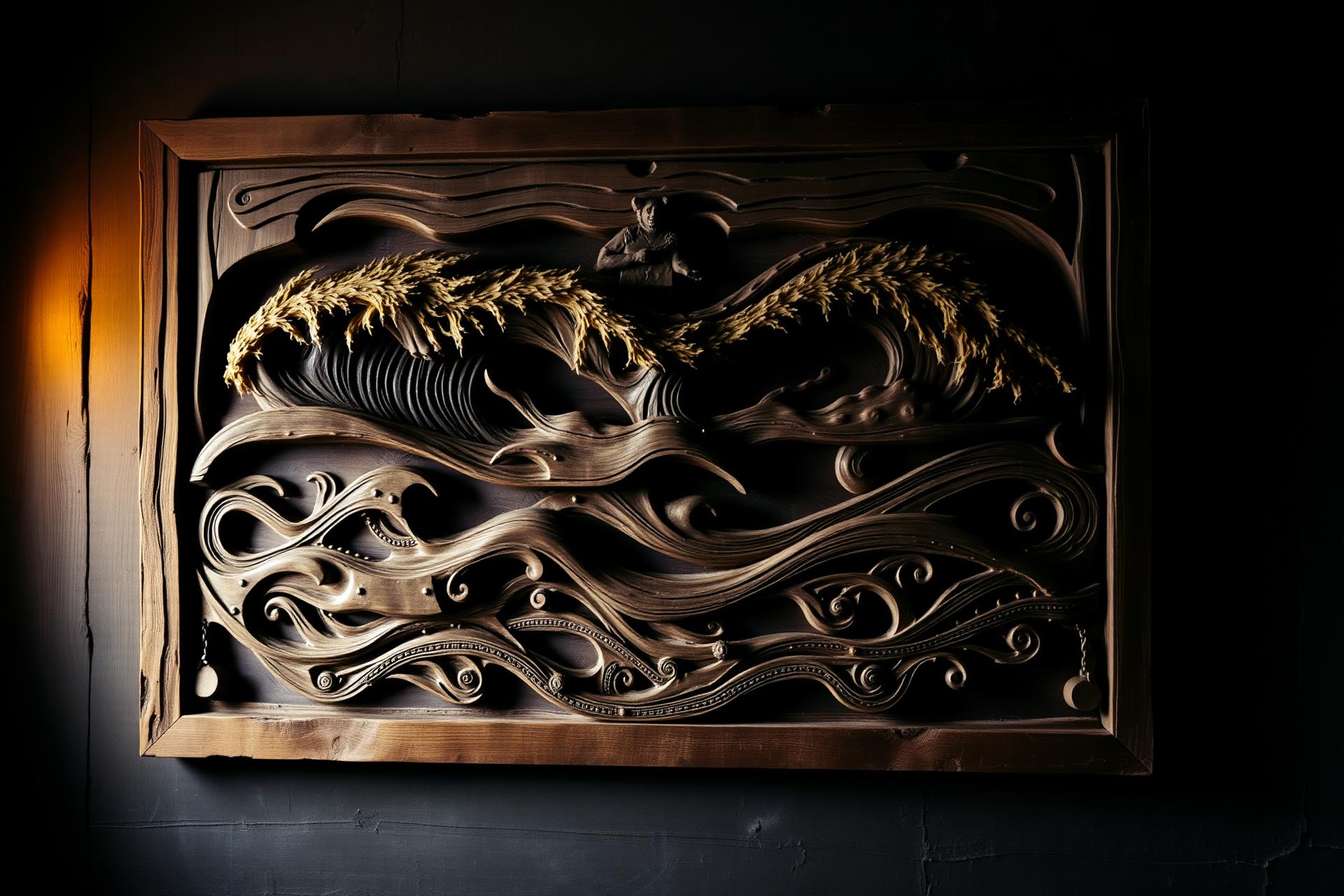 Stacked wood landscapes and motifs that throw real depth and shadow.
